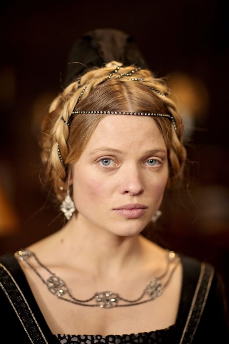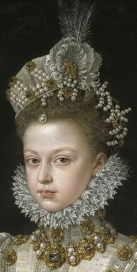En el Renacimiento, los tocados se convirtieron en auténticas obras de arte adornadas con joyas, plumas y encajes . Apareció la cofia francesa, hecha de lino y sujeta con horquillas.