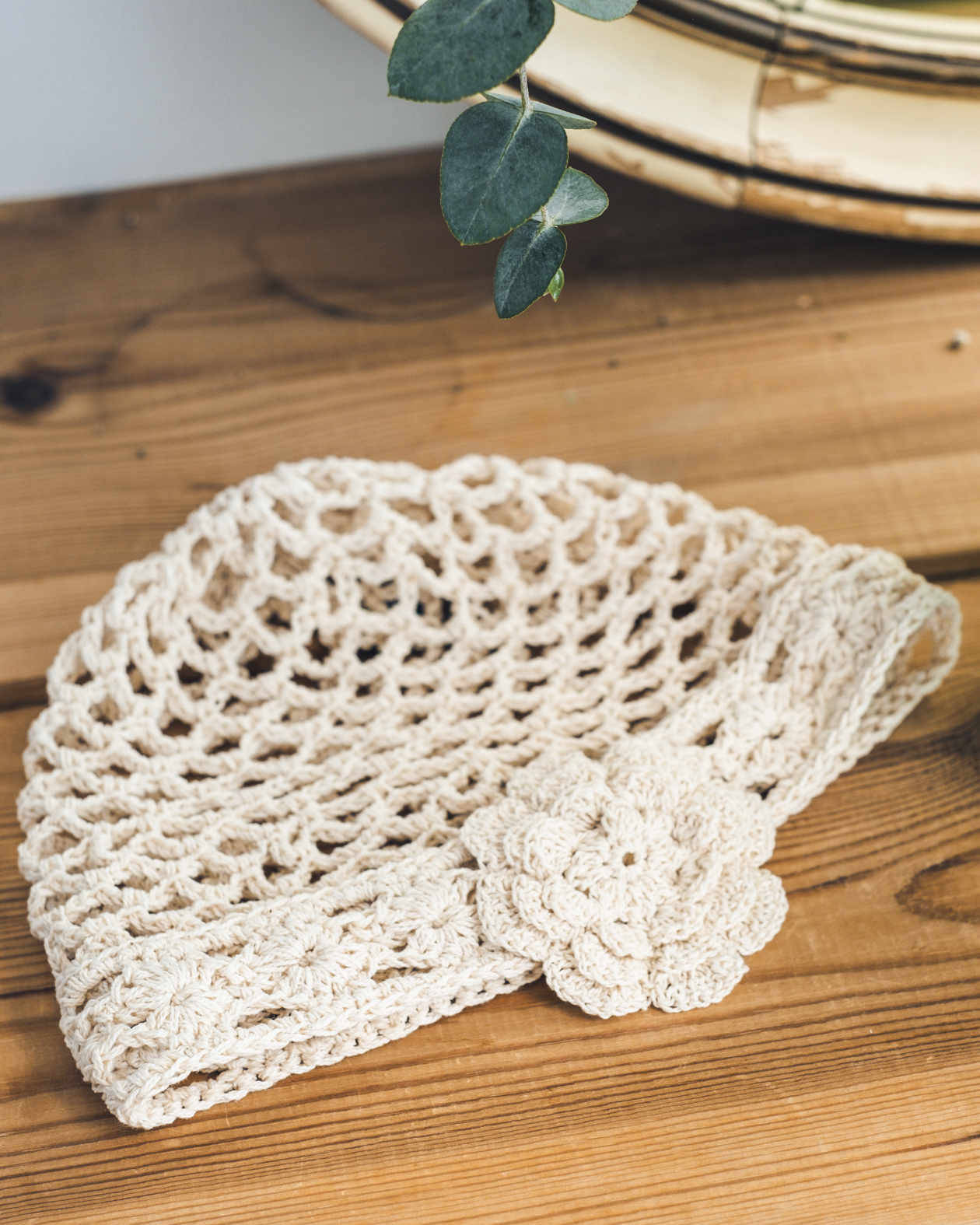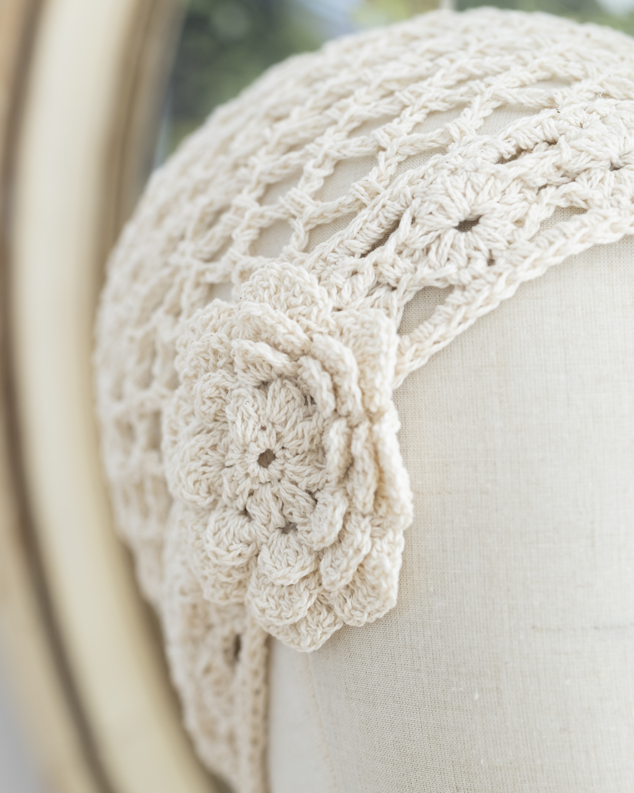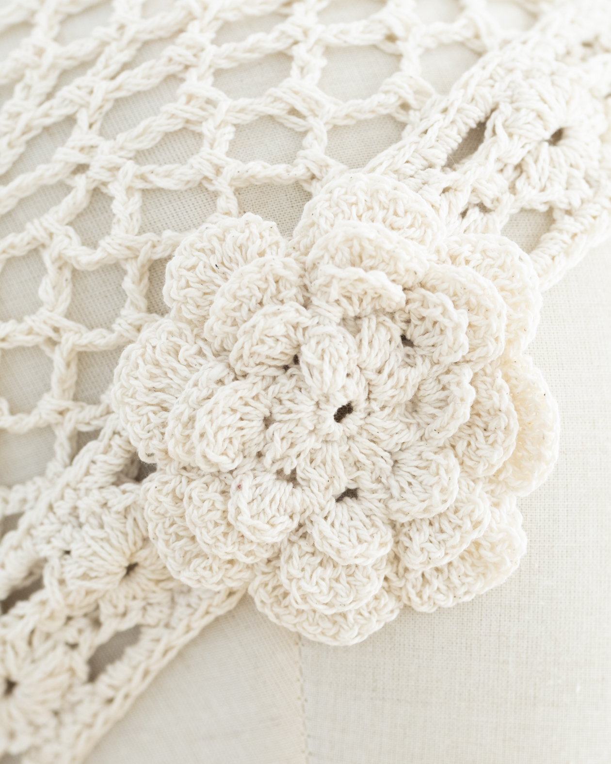 Confeccionado con punto red y flores en relieve trabajadas en el mismo hilo.
