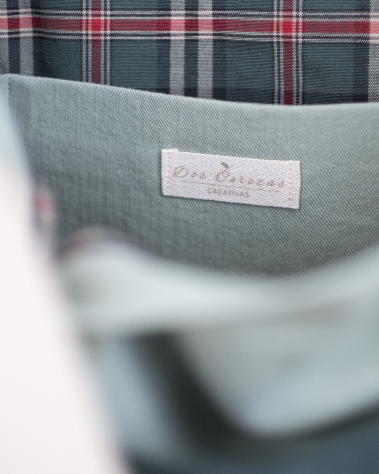 Su diseño cobra vida gracias al contraste cromático que aporta el bolsillo circular exterior, realizado en serraje de piel vacuno 100% en un profundo verde inglés. Esta elección de materiales —la calidez del algodón frente a la textura aterciopelada del serraje— crea una pieza con carácter propio, elegante y atemporal. Al abrir el shopper, te recibe un forro de cuadros escoceses en diversas tonalidades de verde, un detalle interior que evoca el encanto de lo tradicional y que incluye un bolsillo práctico para mantener tus esenciales siempre a mano.